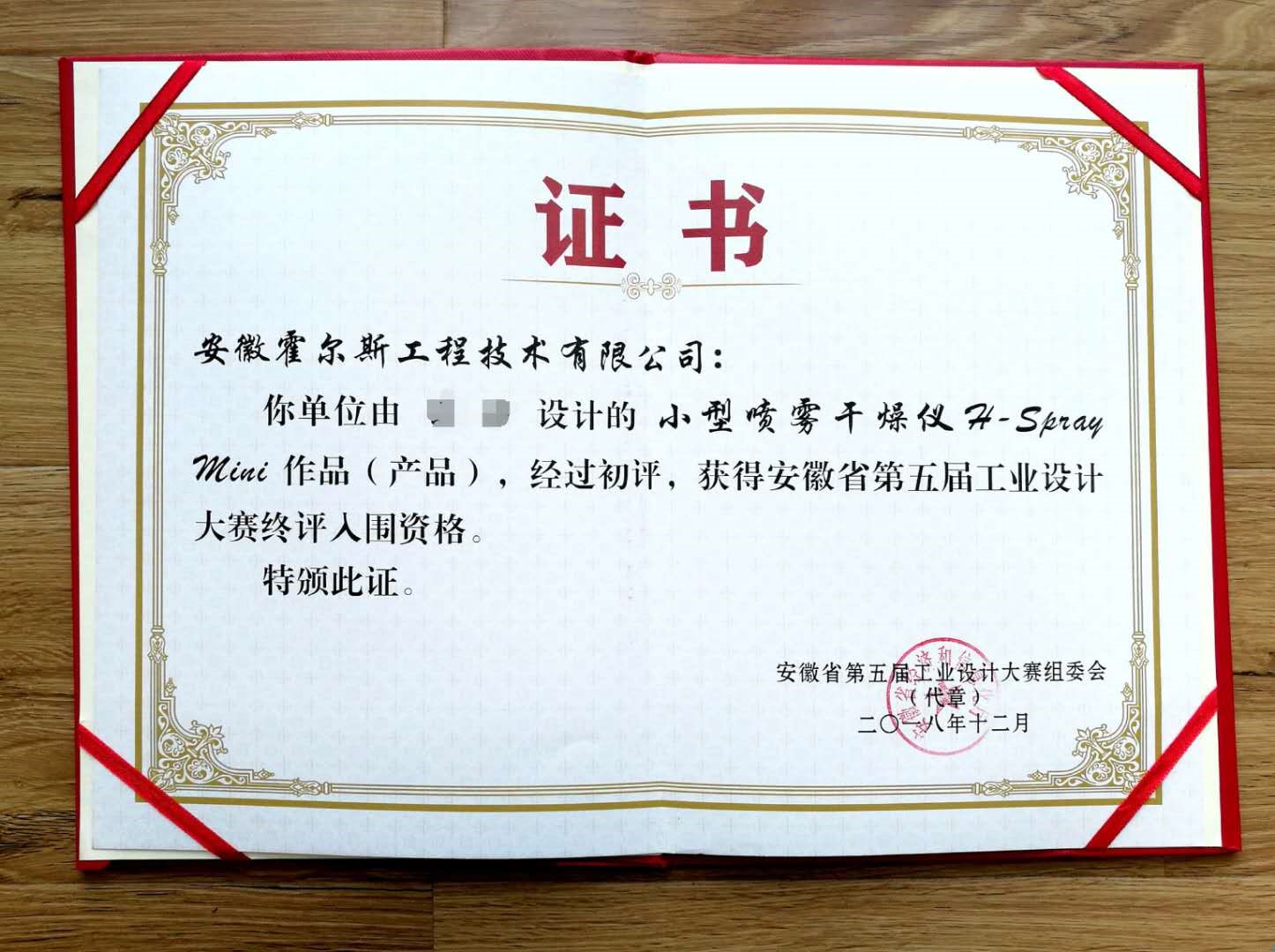 近日,由省经济和信息化委主办,安徽经济报社、各市经济和信息化委、有关行业协会等协办组织的安徽省第五届工业设计大赛揭开获奖名单。安徽撸撸在线视频工程技术有限公司研发设计的小型喷雾干燥仪H-Spray Mini成功入围此次大赛终极资格。